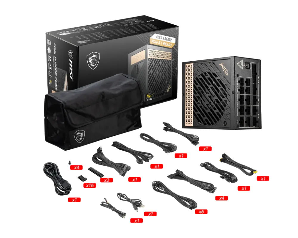 Le port de sortie est compatible avec les normes PCIe 5.0 et Intel PSDG (Power Supply Design Guide) ATX 3.0. Aussi, ce bloc d'alimentation peut supporter une excursion de puissance totale deux fois plus élevée et une excursion de puissance GPU trois fois plus élevée.