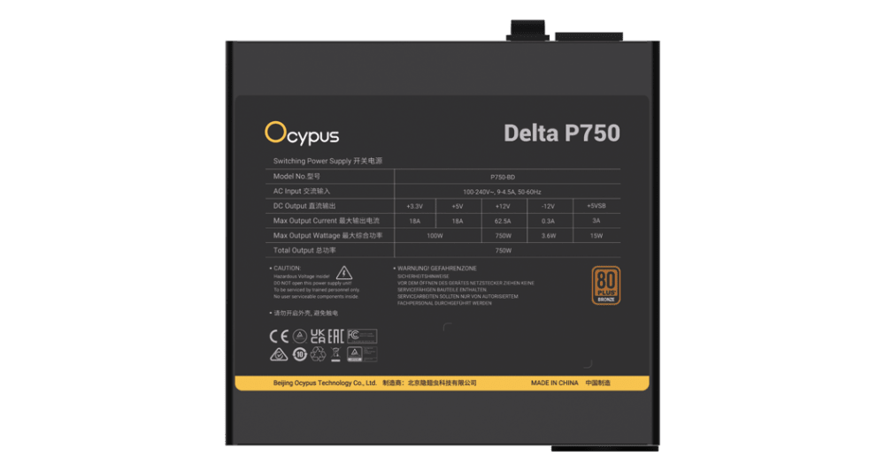 Puissance de sortie 750 W, idéale pour des PC avec processeur et carte graphique haut de gamme.
