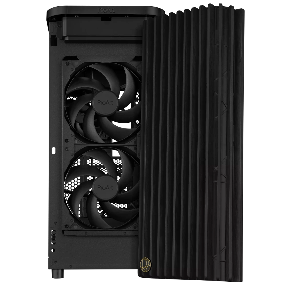 Le ProArt PA401 Wood Edition présente un panneau frontal en bois qui crée un style élégant et distinctif tout en favorisant le développement durable. Le bois utilisé est certifié par le Forest Stewardship Council® (FSC®), et sa finition est réalisée selon un processus en six étapes. Le boîtier bénéficie également d'un refroidissement intégré optimal, avec deux ventilateurs avant de 160 mm et un ventilateur arrière de 120 mm, ainsi qu'un concentrateur de ventilateur intégré, permettant un flux d'air optimal.