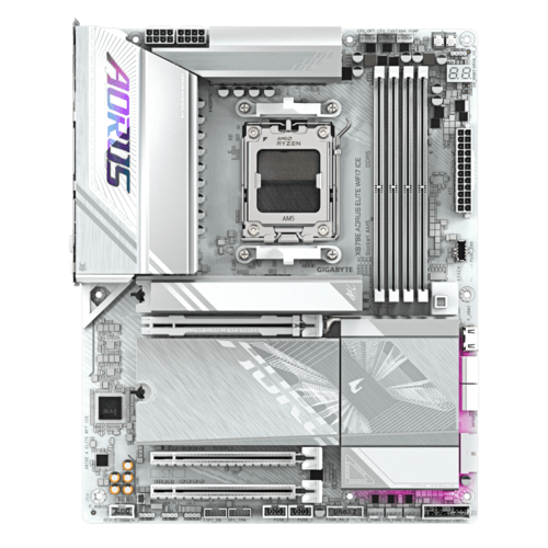 La AORUS X870E ELITE WIFI7 ICE est une carte mère haut de gamme pour PC sous plateforme AMD Socket AM5, conçue pour offrir performance, compatibilité et connectivité de nouvelle génération — un excellent choix pour les gamers, créateurs ou utilisateurs exigeants souhaitant tirer le meilleur parti de leurs composants. Elle combine un design robuste, des fonctionnalités modernes et une grande flexibilité pour des builds puissants et pérennes.