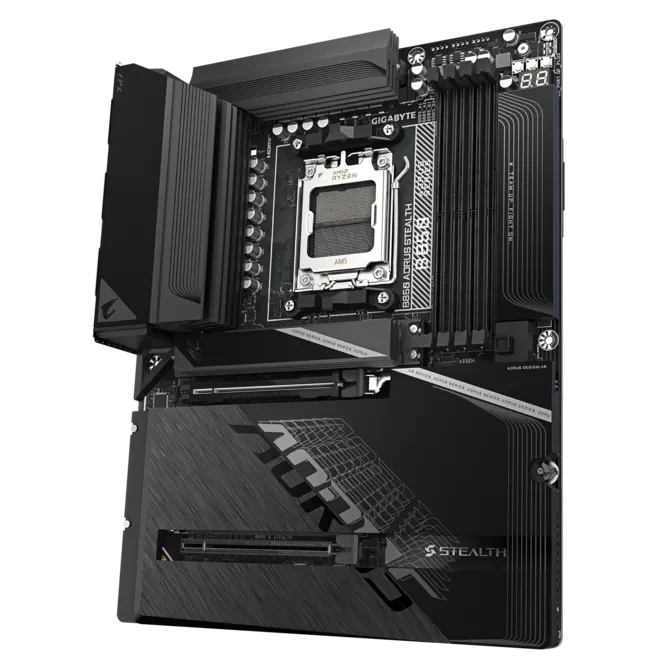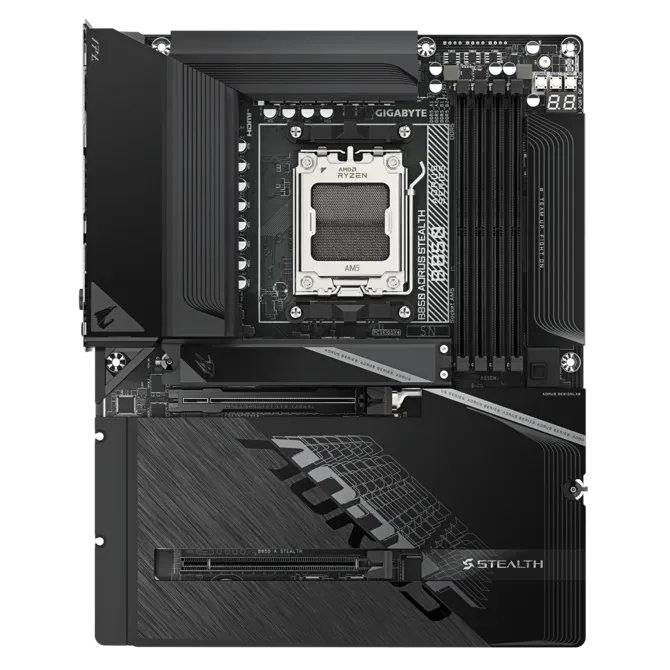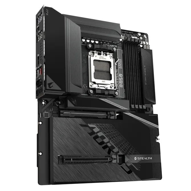 La B850 AORUS STEALTH est une carte mère innovante conçue pour les configurations modernes alliant performance et esthétique épurée. Basée sur le chipset B850, elle prend en charge les processeurs AMD Ryzen récents et la mémoire DDR5, offrant ainsi une excellente combinaison de puissance et de réactivité pour le gaming et la productivité. Son concept “Stealth” se distingue par une connectique dissimulée à l’arrière, permettant un câble management propre et un rendu visuel minimaliste, idéal pour les configurations vitrées. Elle intègre également le PCIe 5.0 pour les composants de dernière génération, assurant des performances rapides et une évolutivité durable. Dotée d’un système d’alimentation fiable et d’un refroidissement optimisé, elle garantit stabilité et efficacité même en utilisation intensive. Côté connectivité, elle propose des solutions réseau rapides et des ports USB modernes pour une expérience fluide au quotidien. La B850 AORUS STEALTH est le choix parfait pour les utilisateurs recherchant une carte mère performante