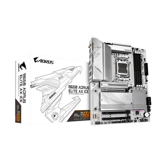 La Gigabyte B650M AORUS ELITE AX ICE est une carte mère Micro-ATX conçue pour les processeurs AMD Ryzen sur socket AM5. Elle prend en charge la mémoire DDR5, offre une alimentation solide pour les processeurs récents et dispose de trois emplacements M.2, dont un en PCIe 5.0 pour les SSD de nouvelle génération.