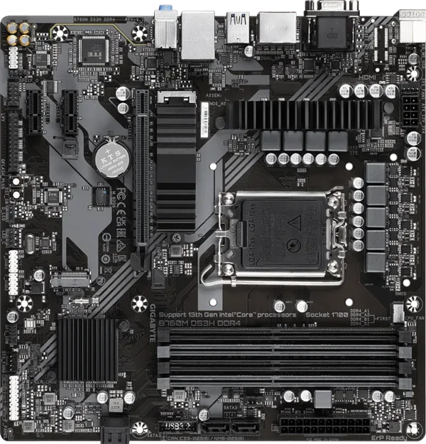 La Gigabyte B760M DS3H DDR4 est une carte mère Micro-ATX fiable et économique, idéale pour les configurations bureautiques avancées et gaming accessible, basée sur le chipset Intel B760 et compatible avec les processeurs Intel de 12ᵉ, 13ᵉ et 14ᵉ génération (socket LGA1700). Elle mise sur un excellent rapport performance/prix en conservant la mémoire DDR4, permettant de réduire le coût global de la configuration tout en offrant des performances solides pour la majorité des usages. Son alimentation stable et son design thermique efficace garantissent un fonctionnement fluide au quotidien. Côté stockage, elle dispose de slots M.2 NVMe PCIe 4.0 pour des vitesses rapides, ainsi que de ports SATA pour plus de flexibilité. La connectivité inclut plusieurs ports USB, un LAN Gigabit et des sorties vidéo pour les processeurs avec iGPU. Compacte mais bien équipée, elle constitue une base parfaite pour un PC polyvalent, évolutif et accessible.
