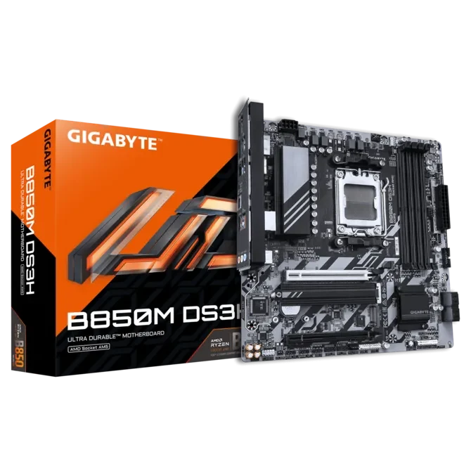 La Gigabyte B850M DS3H (Rev. 1.2) est une carte mère Micro-ATX moderne et accessible, basée sur le chipset AMD B850 et conçue pour les processeurs Ryzen sur socket AM5 (Ryzen 7000 / 8000 / 9000). Elle vise à offrir une plateforme fiable et évolutive pour les configurations gaming et bureautiques avancées. Elle propose une alimentation stable grâce à un VRM numérique optimisé, suffisant pour les processeurs Ryzen milieu et haut de gamme dans un usage gaming ou productivité. Le design thermique inclut des dissipateurs sur les zones critiques afin de maintenir de bonnes performances en charge. La carte prend en charge la mémoire DDR5, avec une capacité élevée et des fréquences adaptées aux plateformes AMD modernes, permettant de bonnes performances en multitâche et jeux récents. Côté stockage, elle intègre généralement des slots M.2 PCIe (dont PCIe 5.0 selon configuration) et SATA, offrant une grande flexibilité pour SSD rapides et disques supplémentaires. La connectivité est un point fort avec LAN 2.5 GbE, plusieurs ports USB modernes et sorties vidéo pour les processeurs avec iGPU, assurant une bonne compatibilité globale.