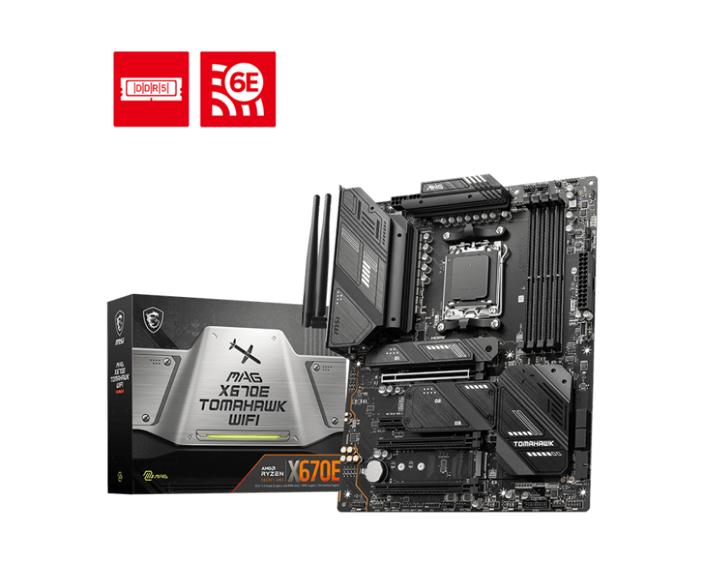 MAG X670E TOMAHAWK WIFI Support des processeurs pour PC de bureau AMD Ryzen™ série 7000 Support mémoire DDR5, jusqu'à 7800+ (OC) MHz Alimentation améliorée : double rail à 14+2+1 phases, deux connecteurs d'alimentation CPU à 8 broches et technologies Core Boost et Memory Boost Transferts de données ultrarapides avec les connecteurs PCIe 5.0, Lightning Gen5 M.2 et USB 3.2 Gen2x2 Refroidissement efficace et performances assurées avec un dissipateur plus large et des slots M.2 Shield Frozr Audio Boost pour une qualité audio parfaite et une immersion totale Circuit imprimé de niveau serveur à 8 couches de cuivre de 2 onces