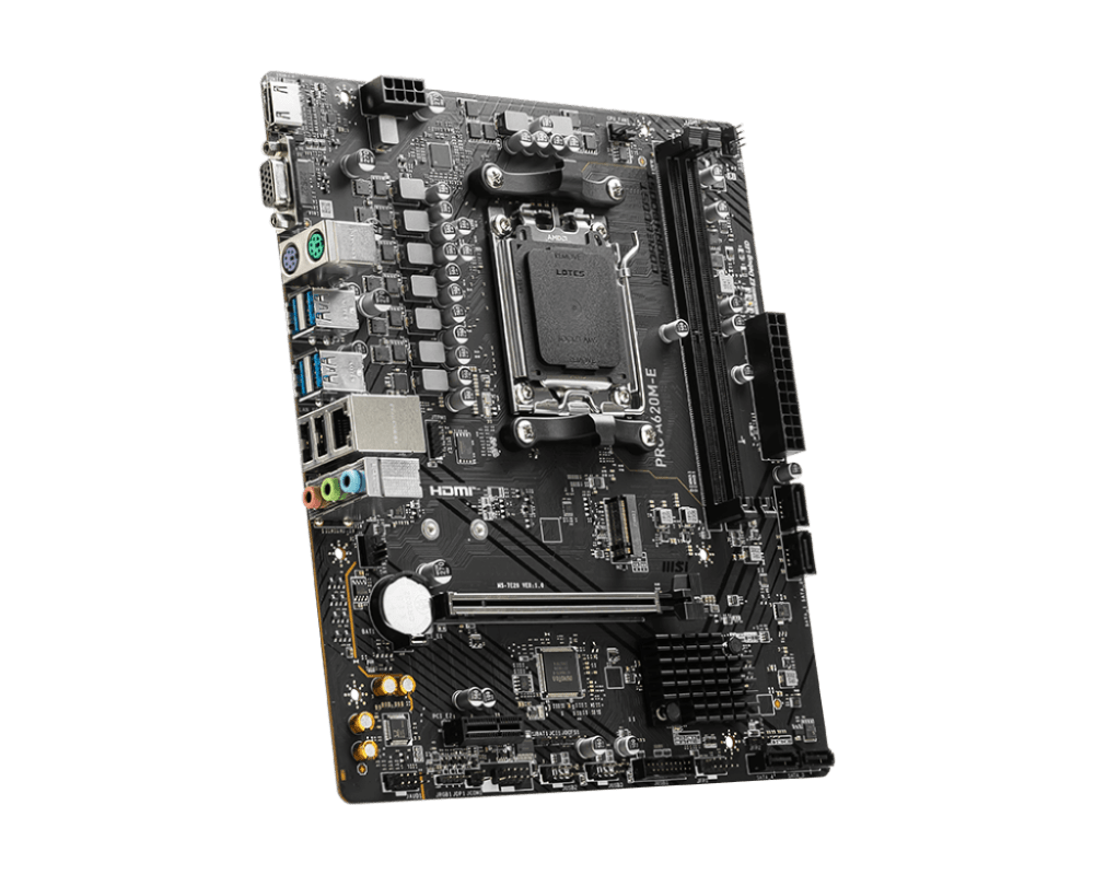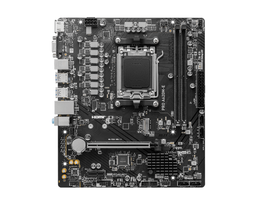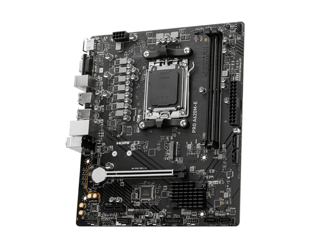 La MSI PRO A620M‑E est une carte mère micro‑ATX à bon rapport qualité‑prix, supportant Ryzen AM5, DDR5 rapide, un slot PCIe 4.0 et stockage M.2 ultra‑rapide. Elle convient parfaitement aux builds compacts et efficaces, mais montre ses limites avec les processeurs à haute consommation ou les configurations très exigeantes.