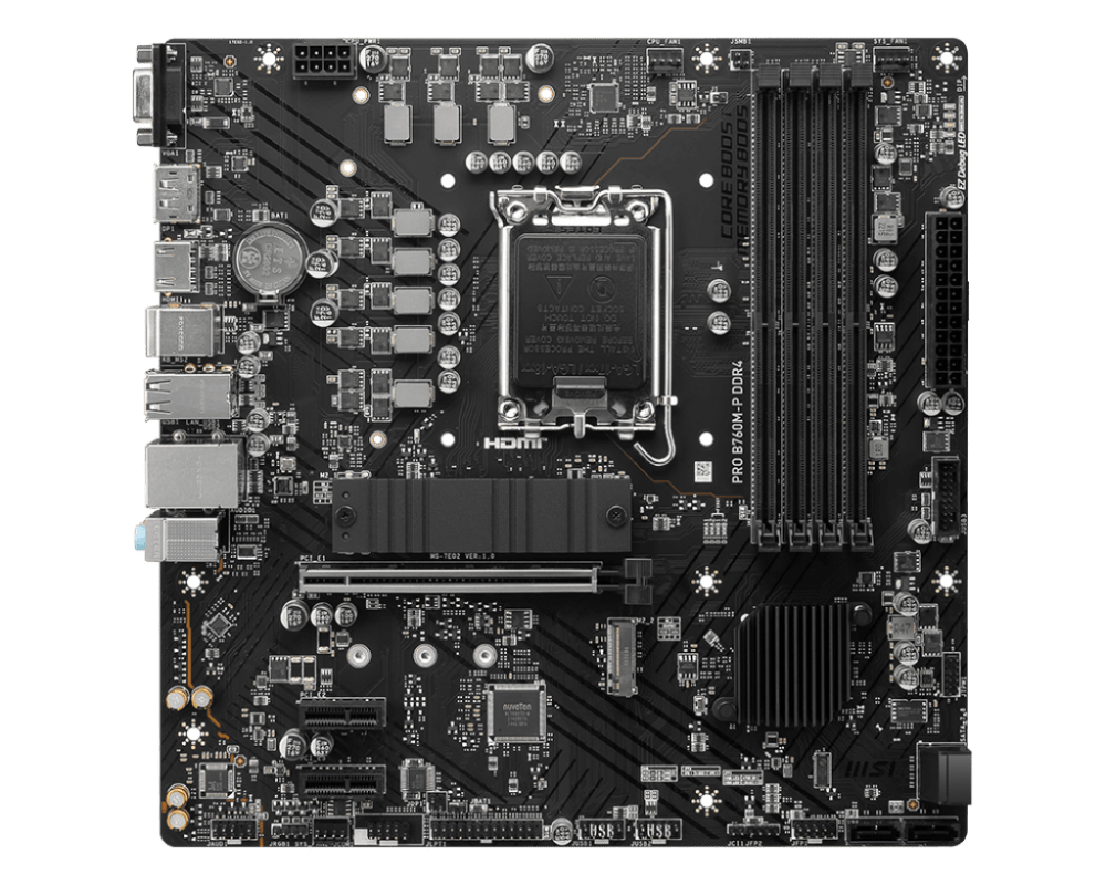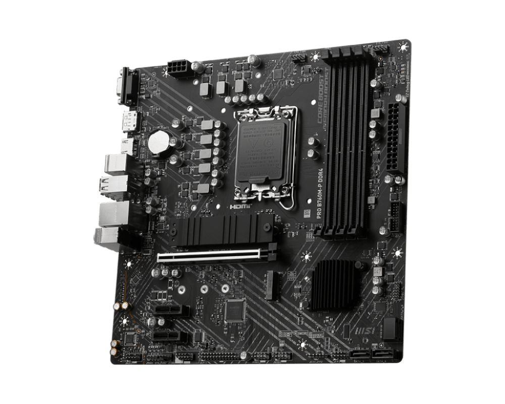 La carte mère MSI PRO B760M-P DDR4 conçue pour les processeurs Intel Core hybrides de 12ème et 13ème génération est idéale pour l'assemblage d'une configuration puissante au coût maitrisé. Elle prend en charge les processeurs Intel Core 12ème et 13ème génération, les cartes graphiques PCI-Express 4.0 16x, les SSD M.2 PCIe 4.0, la RAM DDR4 ainsi que les périphériques USB 3.1.