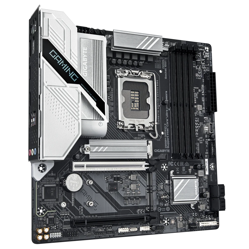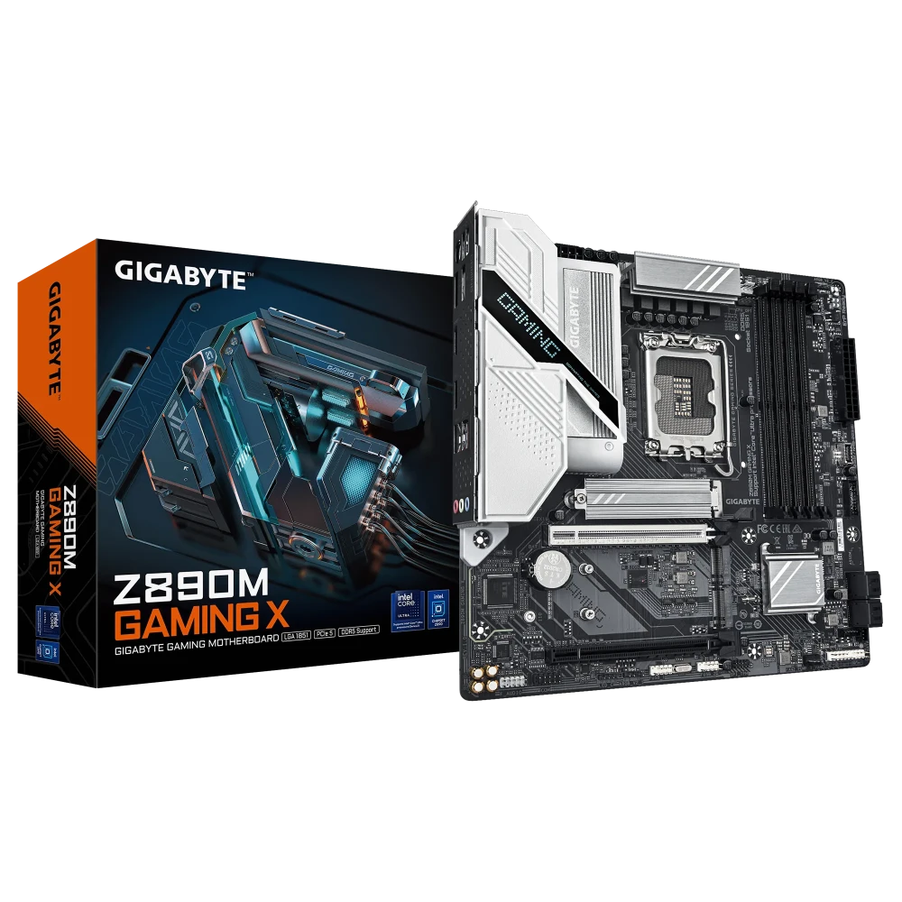 La Gigabyte Z890M GAMING X incarne une plateforme haut de gamme au format micro‑ATX, pensée pour tirer pleinement parti des dernières innovations Intel. Compatible avec les processeurs Intel Core Ultra (socket LGA 1851) et la mémoire DDR5 haute fréquence, elle offre des performances solides, une connectique complète (PCIe 5.0, M.2 Gen4, LAN 2.5 GbE) et une conception thermique optimisée pour la stabilité en charge.