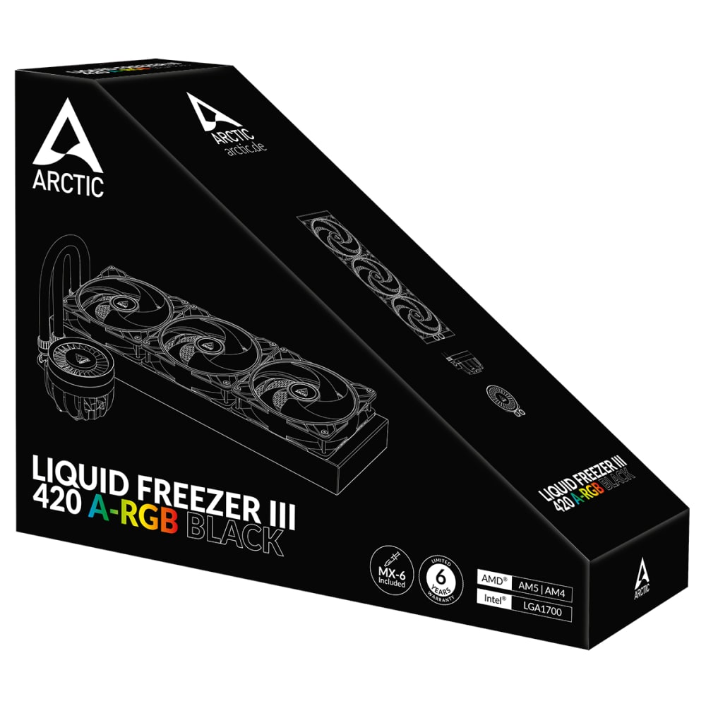 Le Arctic Liquid Freezer III 420 A-RGB est un kit de watercooling AIO 420 mm hautes performances, silencieux et durable. Il se distingue par son épais radiateur, ses ventilateurs 140 mm ARGB, un ventilateur VRM intégré et une compatibilité étendue Intel/AMD. Une solution idéale pour les configurations puissantes