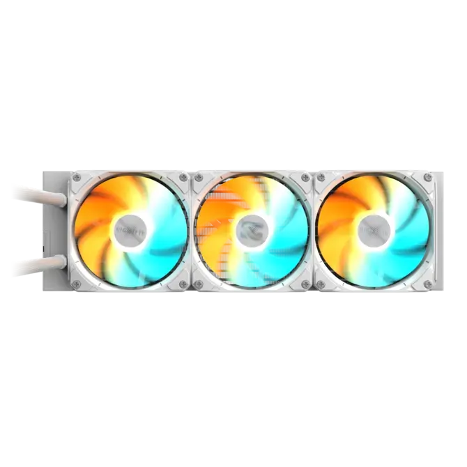 Refroidissement liquide AIO 360 mm (radiateur 3x120 mm) pour CPU hautes performances. Triple ventilateur PWM optimisé pour fort flux d’air et faible bruit, pompe silencieuse, design sobre avec éclairage RGB (si présent). Compatibilité large Intel/AMD, installation simple, maintenance minimale. Idéal pour overclocking, gaming et stations créatives cherchant performances thermiques et esthétique compacte.